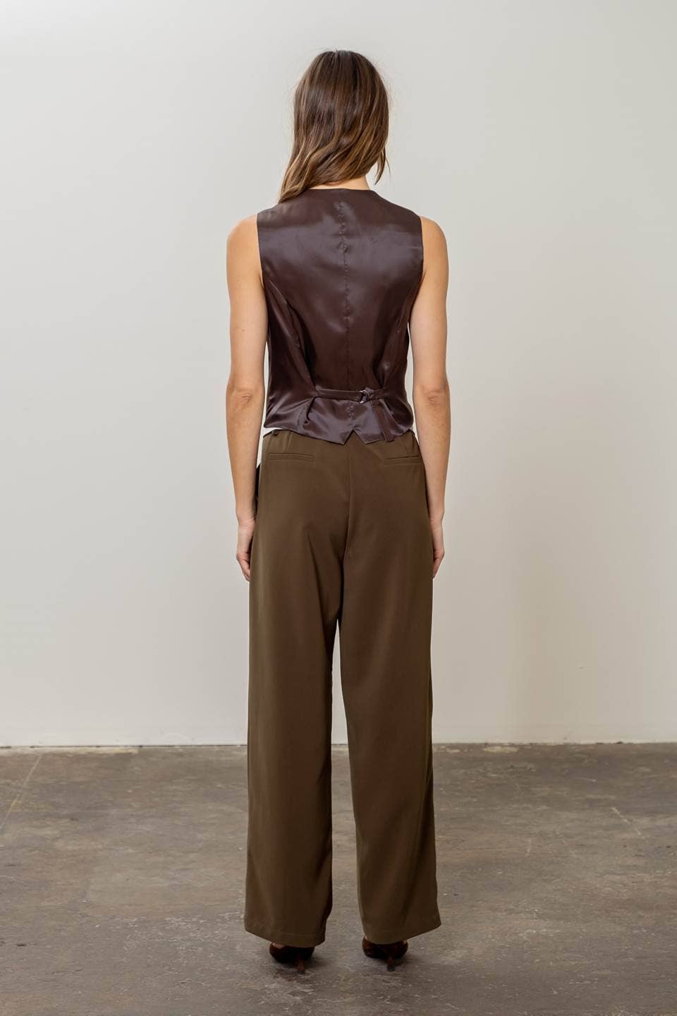 These brown pleated pants come with a matching belt for a secure and adjustable fit. Designed for comfort and style, the pleats add subtle detail while the neutral brown color makes them easy to pair with various tops. Perfect for both casual and semi-formal occasions.