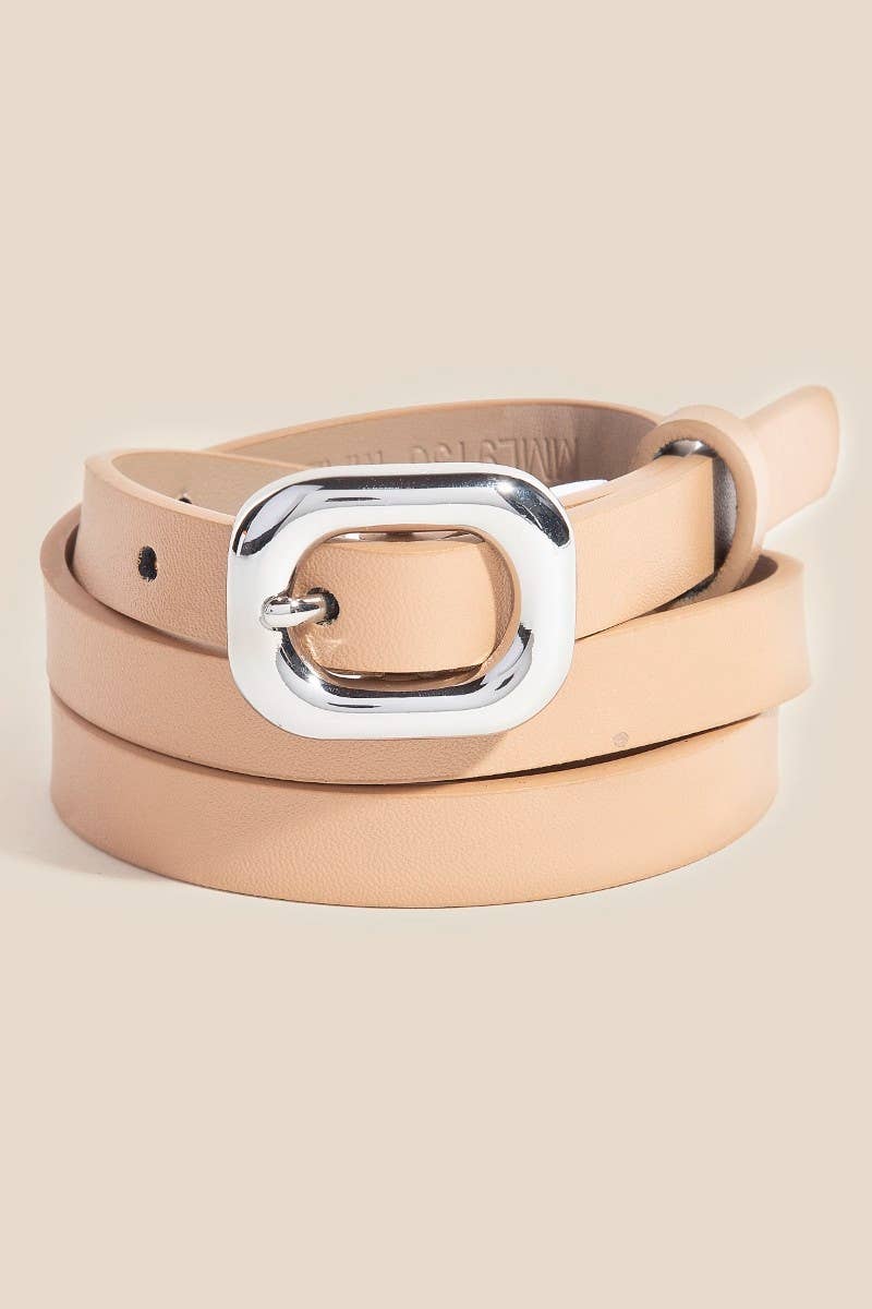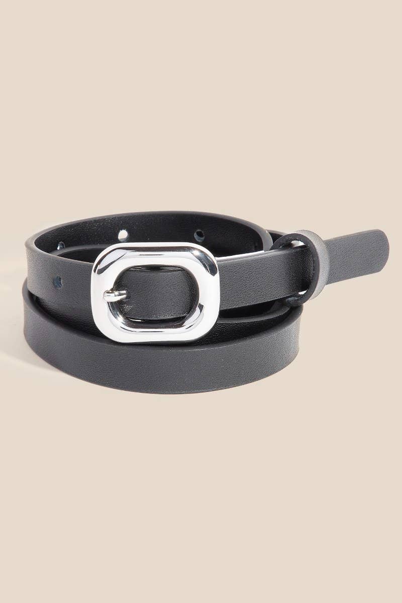 Make a statement, this leather belt encompasses a grand thick rectangle buckle design. This leather belt is the perfect way to add a touch of elegance to any outfit. This leather belt approximately measures: Length: 44 Inches Width: 0.5 Inches This leather belt is made with 90% Bonded Leather 10% Alloy